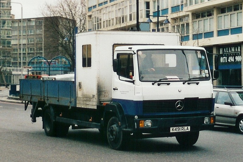 Details: The demountable concept has been widely used by LUL since 1990, with a total of 23 bodies, to a variety of configurations, being bought over the next decade. Perhaps the most flexible are the dropside bodies with crew compartments built (like most other bodies) by Locomotors. DB11 was to this layout and was seen on Mercedes-Benz 1114 lorry 2534M at Elephant and Castle on 3rd February 2000. |