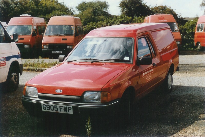 Details: A couple of things about this picture are (slightly) interesting. Ford Escort van 3825F had been new in February 1990 and was seen at Acton Works on 30th August that year. The fleetnumber is notable for not having the suffix, quite unusual then but much more common in later years. Strangely, this van had a full fleetnumber, slightly lower down, when new. Perhaps it had received accident damage repairs. The boxed lettering shows the attempts to seek additional work and reads 'Distribution Services', 'Transport Contractors' with a phone number. Finally, the minibuses lined up in the background appear to be former dial-a-ride Renaults. These may have been stored here pending disposal, although it is believed there was no official connection between London Transport and London Dial-a-Ride at the time. |