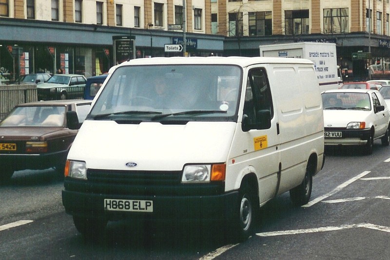 Details: A publicity department Ford Transit van (slightly cleaner than sister vehicle 3952F), 3958F was seen at Lewisham on 18th April 1991. The runner for the sliding offside cab door is just visible, although it will be noted the nearside door is hinged.