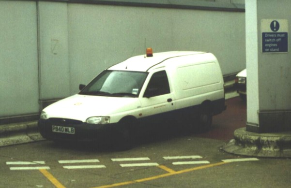 Details: Parked in Hammersmith bus station is Ford Escort van 4593F (P840MLB). Leased in 1996, this carried an orange light on its roof, unusual for this type. |