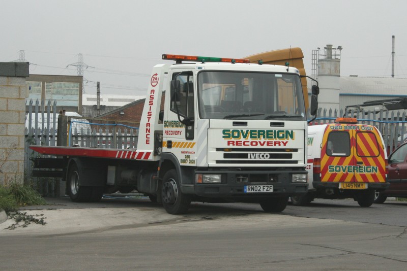 Details: Sovereign Recovery have a small base near Arriva London's Lea Valley and Edmonton depots, and Damon dutifully snapped this Iveco truck there on 7th November 2006. What he did not realise at the time was that the Ford Escort van alongside is (or was) a real service vehicle. Four Fords in the L/NMY series were used by South London and Leaside from about 1994, the two companies both being bought by Cowie that year. L145NMY was initially with South London but had moved to the Edmonton depot of Arriva London North (as Leaside became) by 2004. It may have been sold to Sovereign at about this time. |