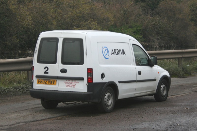 Details: Yet another Arriva London Vauxhall Combo crew ferry van, this time number 2, bouncing along the road next to the canal that separates the two bus depots of Lea Valley and Edmonton. 7th November 2006. |