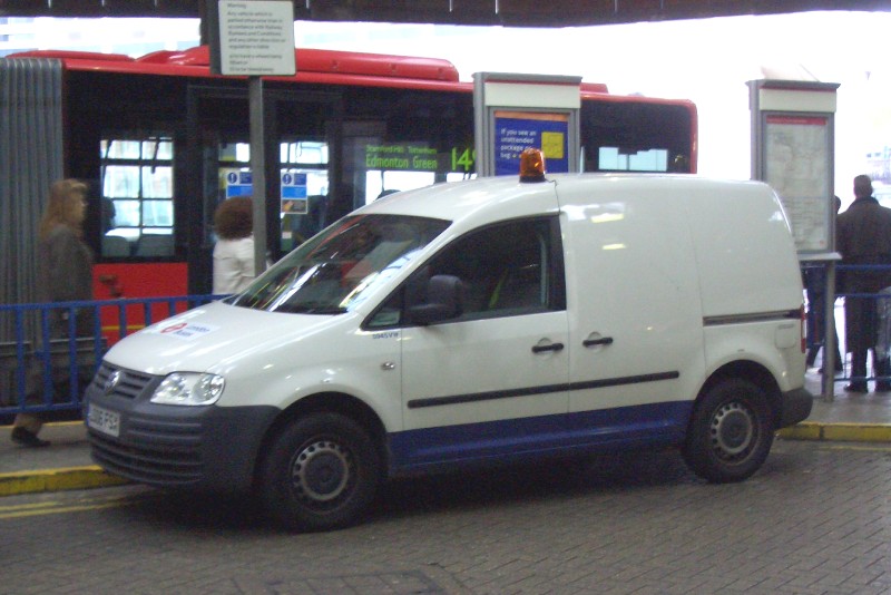 Details: I haven't scored many photo scoops recently, particularly compared to our more prolific contributors. But this van seen this morning (14th November 2006) was a bit special and has been included despite a less than perfect photo. It arrived at London Bridge Bus Station as I was commuting through, and is the first VW Caddy van reported in the main fleet. Oddly, it carries LUL livery but had London Buses labels on front and rear, and a removable beacon light. As such it is rather like Vauxhall Combo van LR03MYT. The latest VW Caddy van is similar in size to the Ford Transit Connect, earlier models such as East Thames Buses' R218YHK were noticeably smaller. The new design includes a remarkably flush-fitting cargo door. |