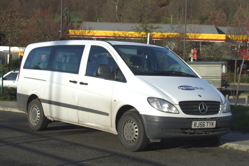 Details: 2006 was a record-breaking year for temperatures, and it is hard to believe that this picture was taken as late as 6th December. The subject is then-new Mercedes-Benz Vito Minibus 8023 of Metrobus. The latest version of the larger Sprinter van has a similar shaped-grille but (fortunately) none have yet been reported as service vehicles. |