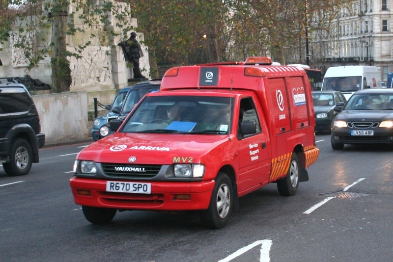 Details: The Arriva London tour operation based at Wandsworth uses fleet numbers MV1 to MV9 to identify its anciliary vehicles, although MV4 has never been reported. Prior to 2006, MV2 was carried by Citroen Berlingo Van R708SLX. It was then transferred to Vauxhall Brava R670SPO as seen here at Hyde Park Corner on 6th December 2006. Ford Transit V767XVL had earlier been renumbered from MV5 to MV1 so it is possible that R708SLX survives with a new number. The Brava is an unusual design, most of the survivors being from a large batch bought by the AA. These had custom bodies designed for roadside assistance, making them very suitable for bus engineering duties. A similar vehicle was acquired by London United in the form of N511UDP. |
