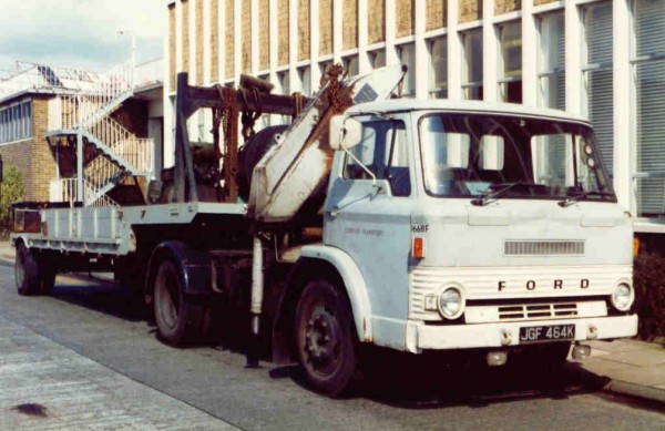 Details: Ford DA1610 articulated unit 1668F (JGF464K) was new in 1972 and was fitted with a HIAB crane. Note the use of registration number sequences also used for buses on this and contemporary vehicles. The JGF/K range was also seen on DMS and SMS classes of bus. |