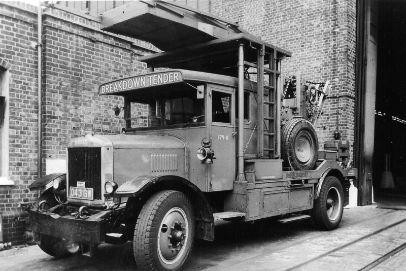 Details: This picture should be familiar to many of you as it featured on the cover of the original SUP15 publication back in 1978! 179K was a Karrier Tramway breakdown tender with crane and tower unit, and lasted from 1934 (when it was numbered 111 in the tramway series) until the end of the system in 1952. |
