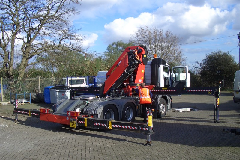 Details: We are very grateful to the staff of Tube Lines for arranging a demonstration of their newest 'toy' at Acton Works on 6th March 2007. This view shows Mercedes-Benz Actros 2591 being readied for operation. The length and size of the stabilisers is impressive, although the need for them was about to become apparent. |