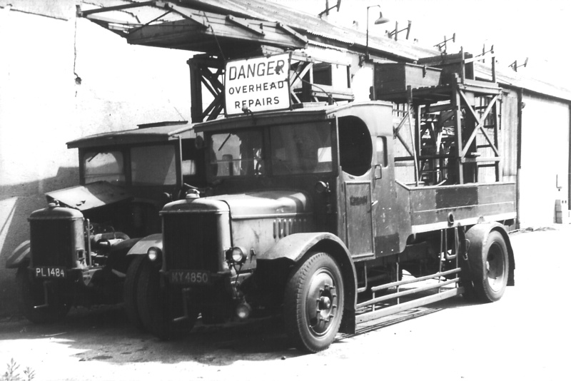 Details: When the service vehicle fleet was renumbered in 1939 it was on the basis of vehicle manufacturer. As Associated Daimler vehicles were listed as ADCs, they took the lowest numbers, before the large fleet of AECs. 4E and 6E were both 6-ton tower wagons, seen here at Ferry Lane works in April 1949. With lettering already obliterated, both vehicles were scrapped two months later. |