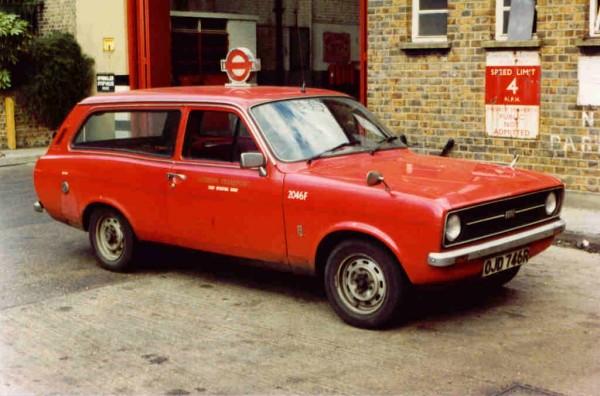 Details: Bus service inspectors and route controllers have made use of several generations of estate cars and light vans, all of which were painted red. Many also featured roof-mounted, illuminated roundels as seen here on 2046F, a Ford Escort 1300 Estate new in 1977. Note the extra pair of wing mirrors. |