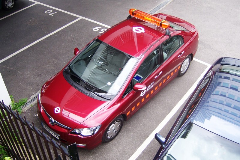 Details: An unusual angle on new Honda Civic car LB07AAX parked at the LBSL offices at Wembley on 2nd August 2007. It seems odd that estate cars have not been specified this time, given the obvious flexibility these allow. |