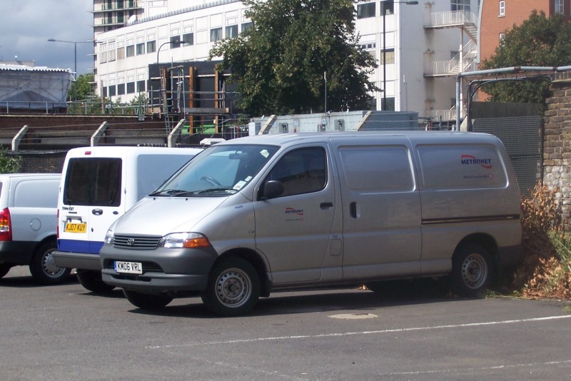 Details: Metronet van 6046T is most notable not for its relatively rare livery, nor its very rare type (Toyota Hiace), but for its completely wrong fleetnumber of 4567F! Originally based at Acton Works, it appears to have transferred to Griffith House in mid 2007 and was seen in the yard there on 18th August, parked alongside unmarked Transit Connect 6168F. |