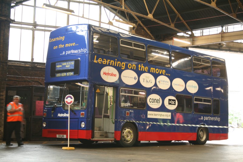 Details: Very few bus companies operate former buses as ancilary vehicles these days, one exception being illustrated here. M151 was converted by Metroline into a mobile classroom in about 2002, and it was repainted in the reverse of the normal fleet livery. It was later re-registered from BYX151V to 33LUG, the latter mark having been acquired with the takeover of the R&I coach company. It was seen visiting the Holloway Garage open day on 1st September 2007. |