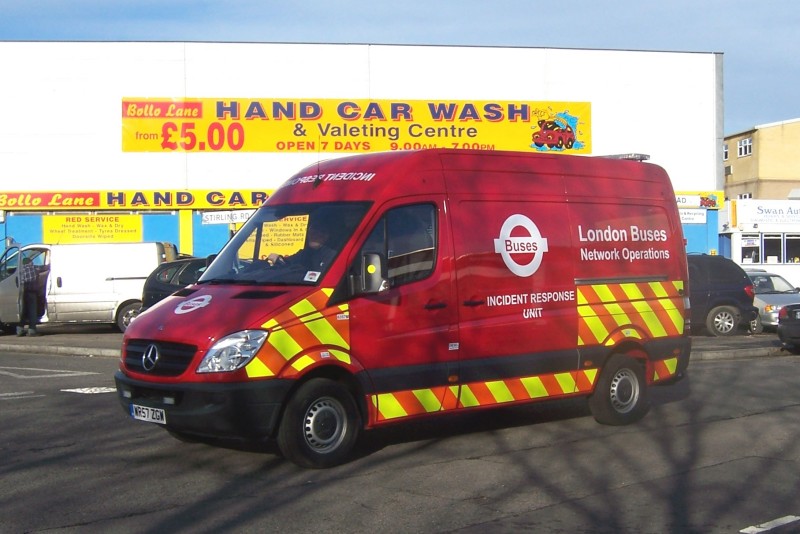 Details: The Incident Response Unit delivered to London Buses in December 2007 (6364M) was followed by several more in January 2008. One of the first to be recorded was 6357M, seen here on Colville Road near Acton works on the 9th. |