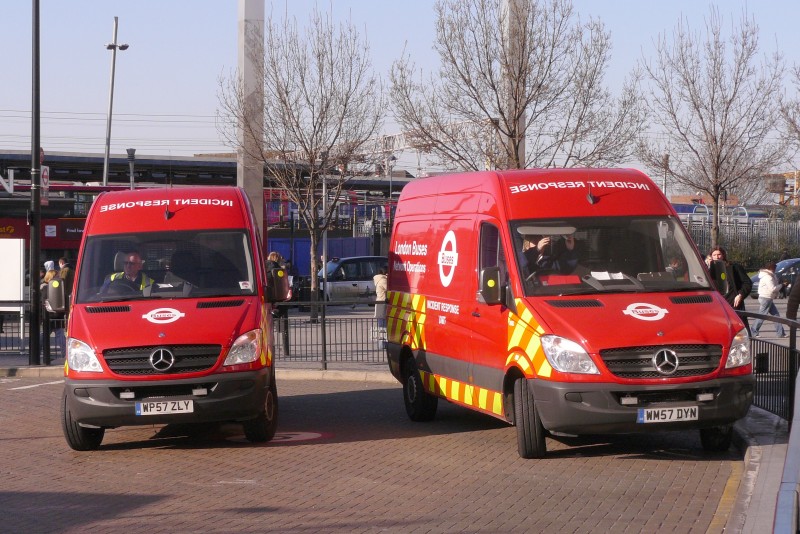 Details: Stratford Bus Station is always good for a few SVs and on 16th February 2008 no less than 11 were present. Among these were three of the new IRUs, including 6369M seen pulling out to pass 6351M. |