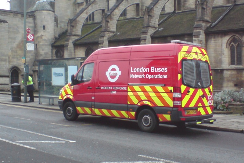 Details: LBSL Incident Response Unit 6363M is seen at work in the London Borough of Barnet on 24th March 2008, with some fine flying buttresses in the background. |