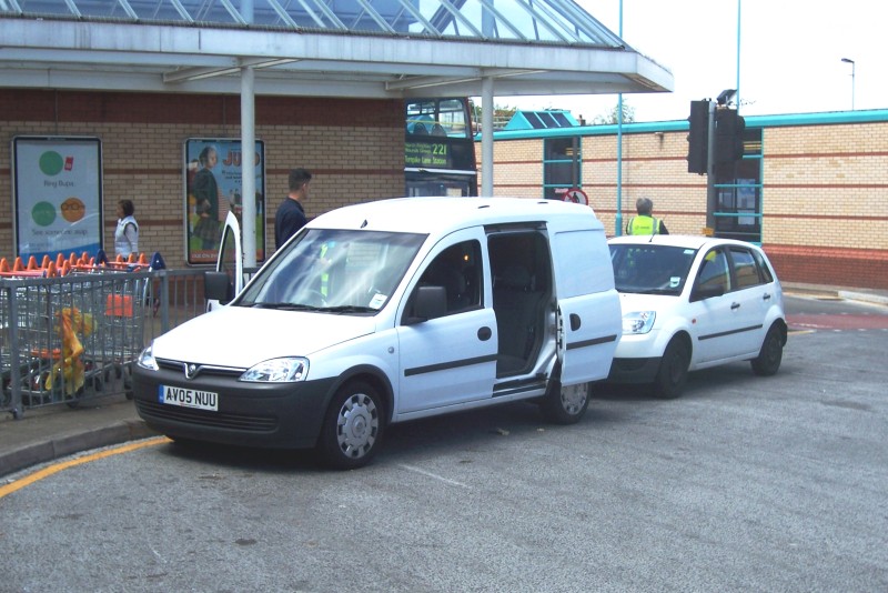 Details: The fleet of crew ferry vehicles that work for Arriva Shires between Garston Garage and locations in London was supplemented in April 2008 by two second-hand Vauxhall Combo vans. Still without logos or fleetnumber, AV05NUU was found at Edgware Bus Station on 28th June 2008. Note how the van has a second row of seats, although side windows are not provided. Parked behind is Ford Fiesta NC04KZA. |