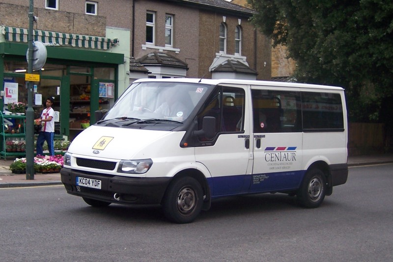Details: The third of today's trio of ex-SVs is a bit of an oddity. The livery of this minibus seen passing through Upper Belvedere on 17th July 2008 is something of a clue that the vehicle was once part of the LUL fleet. This Ford Transit was in fact Tube Lines 5661F, although it was at the time a van. Centaur is a firm based in Sidcup that specialises in social transport across much of south east London. They have a large fleet of minibuses, and also undertake minibus conversions from panel vans. That would explain the change in this vehicle's appearance, but it does seem odd that they didn't go to the trouble of giving it a repaint. |