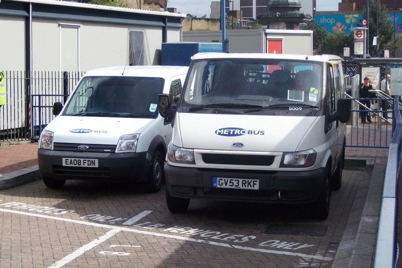 Details: At the beginning of August 2008, Metrobus took delivery of four new Ford Transit Connect vans for use by route controllers. One of two based at Orpington, 9022 was found at Lewisham Bus Station on 11th August alongside older Transit crew van 8009. Both vans display their fleetnumbers in the windscreen. |