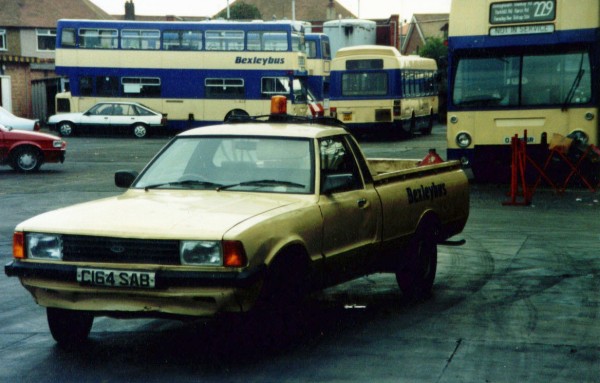 Details: Looking for all the world like a small, provincial bus operation, Bexleybus was in fact a part of the Selkent unit of London buses, created in 1988 to compete for route tenders. Ford P100 pick-up 3353F (C164SAB) was allocated to Bexleyheath garage and painted in this cream livery with blue lettering. |