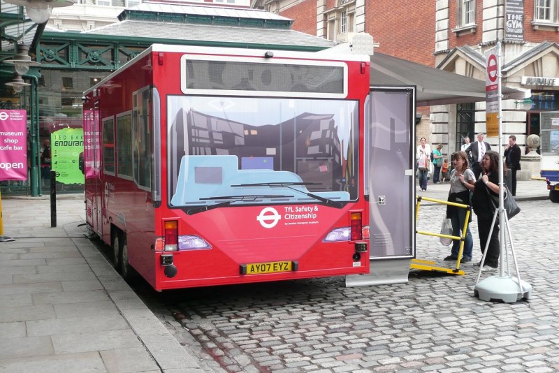Details: What the heck! This is not the front of a Mercedes-Benz Citaro bus. It is in fact the rear of a new TfL exhibition unit. Graham found it parked outside the London Transport Museum in Covent Garden on 5th August 2008. For some more views, click here. |