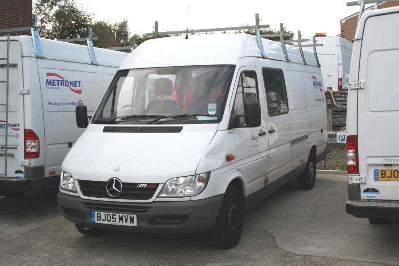 Details: Mercedes-Benz Sprinter 311CDI crew van 5733M was seen parked between sister vehicles 5732M and 5734M at Hainault Depot on 10th October 2008. It would seem that these three are allocated here and just 5731M and 5735M are based at Acton. |