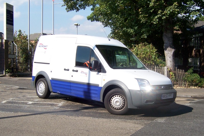 Details: Metronet Ford Transit Connect van 6465F catches the sun as it waits at the traffic lights outside Acton Town station on 26th September 2008. It had come from Museum Way and was heading for Bollo Lane. This large Connect is slightly unusual in having an offside cargo door. |