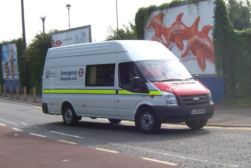 Details: It would appear that the Emergency Response Unit is moving away from the battenburg stripes formerly common. A Jumbo Ford Transit delivered in 2008 carried a yellow stripe edged in blue, similar to that on the Atego rescue tenders. Otherwise it appears to be similar to the pair delivered in 2005 (5813F and 5862F) except that the mirrored Emergency lettering on the bonnet is now in upper case. |
