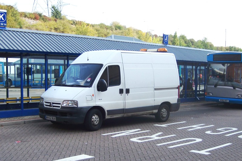 Details: Unmarked vehicles are a recurring theme in today's batch of photos. This anonymous Citroen Relay van photographed at Lakeside bus station on 25th September 2008 is actually operated by Ensignbus, owner of the UVG ('droopy') Dennis Dart parked behind. |