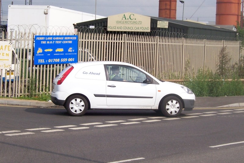 Details: This Ford Fiesta van entered service with the Go-Ahead group in January 2007 but was not allocated to any particular subsidiary, and was rarely seen by any of our reporters. It also carried a white livery while most of their other vehicles were red. On 25th September 2008, Ray found it leaving the Blue Triangle base at Rainham, Blue Triangle now being part of the Go-Ahead group. It may have been in use by Blue Triangle as a crew ferry vehicle, or perhaps it was on some group duties such as delivering paperclips. You certainly couldn't carry much in it! |