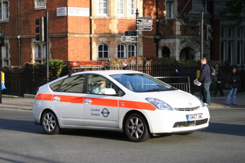 Details: The junction of Elizabeth Street and Buckingham Palace Road (by the main entrance to Victoria Coach Station) is a good place to see service vehicles from the TfL streets fleet, their main base being in nearby Eccleston Place. Colin sent a whole string of photos of Toyota Priuses crossing the junction on 8th October 2008, from which I have selected recently reported SM57JWZ. |