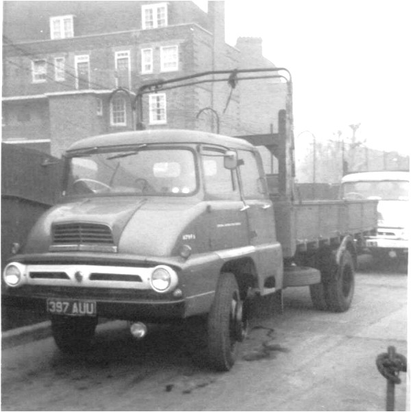 Details: 1179F (397AUU) at Parsons Green in all green livery with tilt cover removed. Points to note include the subscript figure 5 suffix to the fleetnumber, indicating the payload, and the early use of the crew-cab layout. |