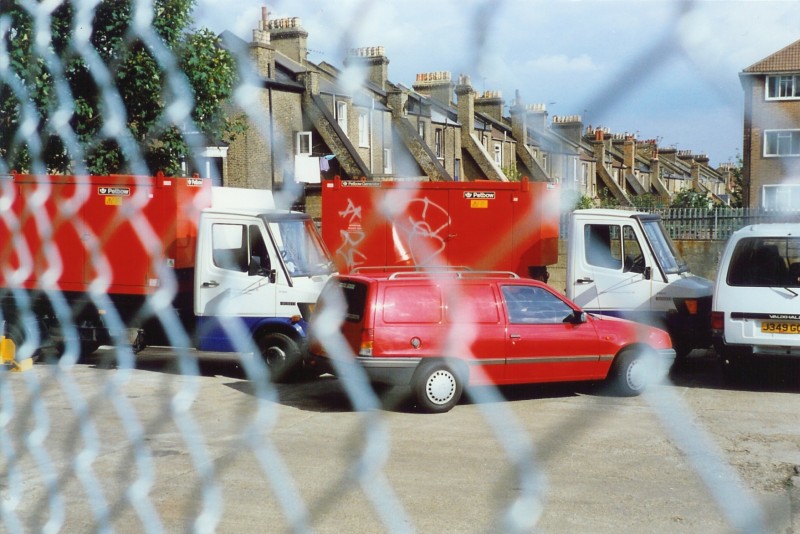 Details: Not the greatest of pictures but I have included this for a number of reasons. Firstly, it proved to be invaluable while I was looking into generators recently, demonstrating that even 'duff' pictures can turn out to be worthwhile. Secondly, it is the only photo I have yet seen of Mercedes demountable 2480M. Thirdly, it is the only photo I have to show the Junction Road location at Holloway. Taken sometime in the early 1990s, it shows 4 SVs in the small yard next to the railway. From the left are Mercedes demountable 2478M with a red generator, an unidentified (and anonymous) Vauxhall Astra van from the 3786B to 3797B batch, Mercedes demountable 2480M also with a red generator, and Vauxhall Midi van 4104B. Note the wheelclamp on 2478M and the trailer behind 2480M (possibly CBT46). The generators are thought to still be in use, repainted white and mounted on newer 2562M and 2563M. 2478M was later used as a vehicle transporter. |