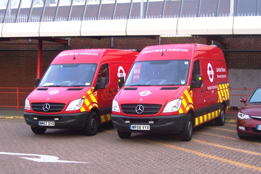 Details: 2008 delivery 6367M is parked next to 2009 delivery 6617M at Eltham Bus Station on 7th March 2009. The differences between the two batches of IRUs are minimal. Minor differences in the positioning of lettering and front lamps are not consistent, while the yellow dots on the wing mirrors (which all the new batch have) have also been applied to some of the first batch. The only other thing I have spotted is that the new batch all have a square no-smoking sticker in the top right corner of the windscreen! |