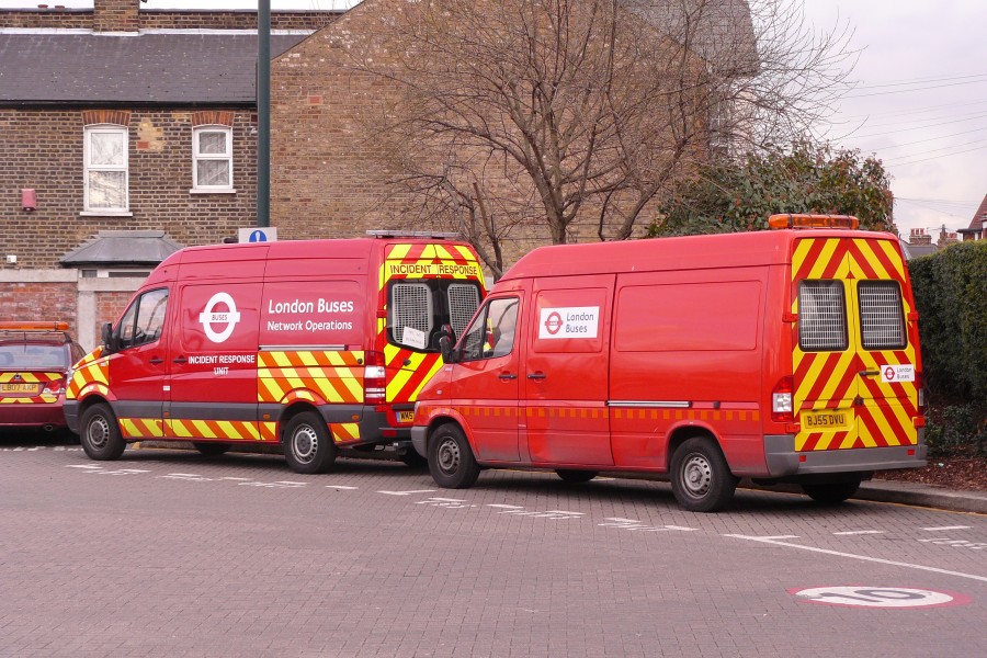 Details: It's farewell to 5793M to 5812M, the batch of 20 Mercedes Sprinter vans leased for London Buses in late 2005. The arrival of a second batch of Incident Response Units in February and March 2009 saw the older vans all returned off lease by the beginning of April. On 4th March, 5804M was parked at Turnpike Lane in company with IRU 6353M and Honda car 6311H. |