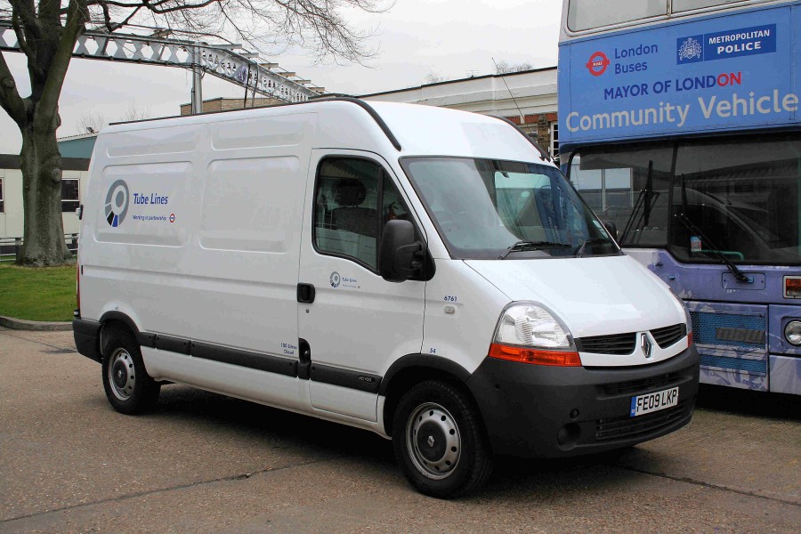 Details: Parked close to the familiar girder 'bridge' within Acton Works on 31st March 2009 was Renault Master van 6761. Part of a batch of five such vehicles, they mark a change in policy both in terms of the supplier and in being 'pool' vehicles. Although carrying Tube Lines logos, the vans could presumably be loaned to Metronet or any other operator with a short-term requirement. Note that the blue skirt is not (yet?) carried, and that the fleetnumber suffix has been dropped. In the background is former M1020, an MCW Metrobus that was latterly used as an exhibition unit in association with the police. I notice that I have not previously published any photos of this vehicle. I will dig one out for the next update. |
