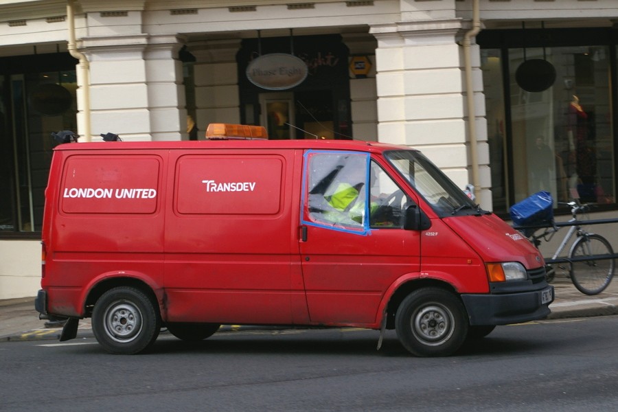 Details: I don't know how often service vehicles are usually repainted but this van evidently hasn't been treated for at least 13 years. The clue is the fleetnumber 4252F near the front, showing that it was originally part of the CDS fleet. New in 1992, the Ford Transit was allocated to the Fulwell garage of London Buses. On privatisation, it became part of the London United fleet, later renamed Transdev. The original London United fleetname, minus logo, is still carried, while it is now on the second version of the Transdev markings. Adding to the sorry state is the sheet of plastic replacing the driver's window. Seen coming off Richmond Bridge on 4th March 2009. |