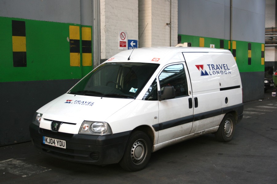 Details: Seen inside the former LT garage at Walworth on 5th April 2009, KJ04YDU is a Peugeot Expert in the Travel London fleet. Although it is assigned a fleet number in the crew ferry series (8970) it is thought to be used by the engineers. Since last illustrated in 2008, the front panel has been repaired. |