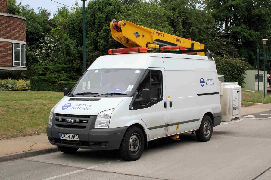 Details: Steve reported this vehicle in Southwark in December 2008 but it has otherwise kept a low profile, until now! 6296F is a Ford Transit mid-height van modified with a roof-mounted Versalift man hoist. Such vehicles are often referred to as Cherry Pickers. It is operated by the Transport for London Highways department and is thought to be based at Carlisle Lane in Waterloo although Kim photographed it at Acton Works on 12th June 2009. Note the extra lights on the front grille, and the retracted stabilisers under the side door. |
