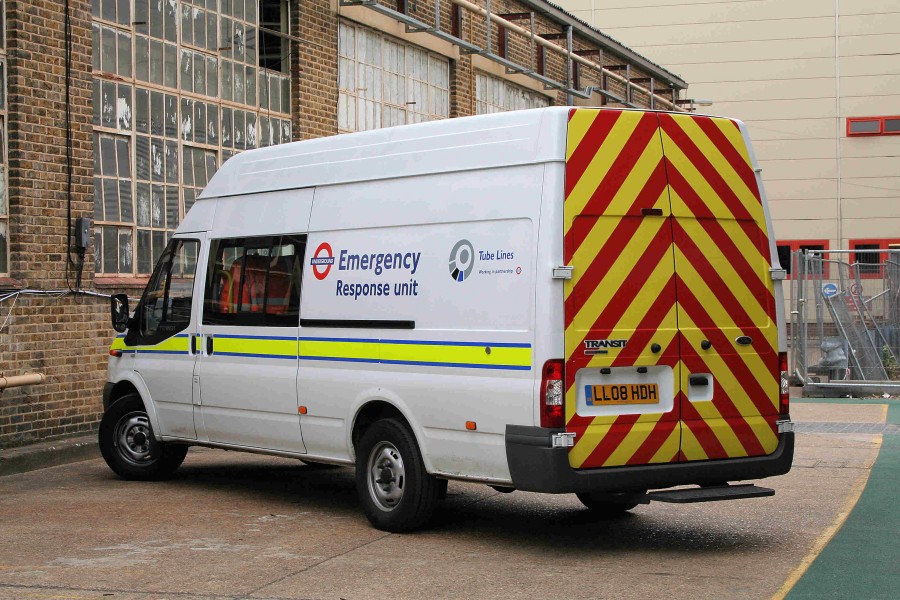 Details: The Emergency Response Unit makes use of two 'Jumbo' Ford Transit vans. 5862F has a tail-lift and a window in the offside only. It also retains the older livery with white/red side stripes. 6488F, seen at Acton Works on 12th June 2009, has windows in both sides and the newer livery featuring a blue-edged yellow stripe. An official list states that is also has a tail-lift but, unless it is a fully internal one, this would not appear to be the case. It is more likely that this is the current Signal Courier van, having replaced earlier 5813F. |