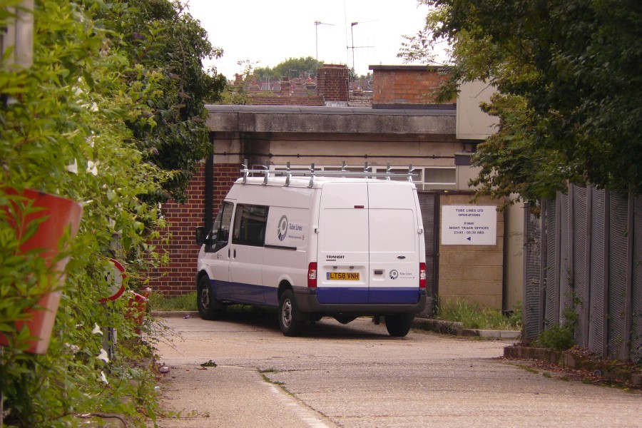 Details: Vehicles at Arnos Grove are usually parked in the car park at the south end of the main building (as seen here), which can be viewed by walking down Highview Gardens. The entrance is actually off Palmer's Road, and Ford Transit crew van 6555F was found parked at the end of the approach road on 4th July 2009.