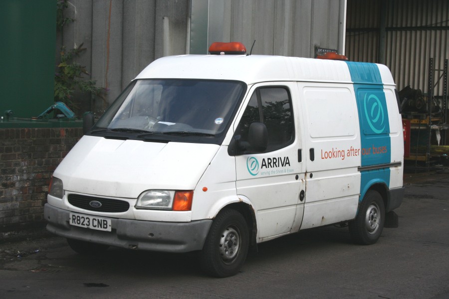 Details: We do very occasionally get service vehicle fleetlists from the bus companies, although it has to be said that the accuracy of them is very variable! R823CNB was listed by Arriva the Shires as being a 12 seat minibus acquired in 1997. The date is suspect as the vehicle was first registered in February 1998. More fundamentally, the vehicle is evidently a van rather than a minibus, although to be fair it is possible this was a (very neat) mid-life conversion. Anyway, the Ford Transit is allocated fleetnumber 1171 (not carried) and is based at Harlow Garage, where it was photographed on 24th July 2009. I could continue the Arriva-bashing by pointing out the rather rusty condition (the rear was worse) and pondering whether they were 'looking after our buses' at the expense of their SVs... but I won't. |