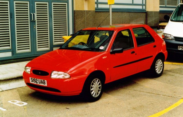 Details: This Ford Fiesta numbered 4879F (S192UAB) was photographed at Hammersmith bus station in plain red livery. |