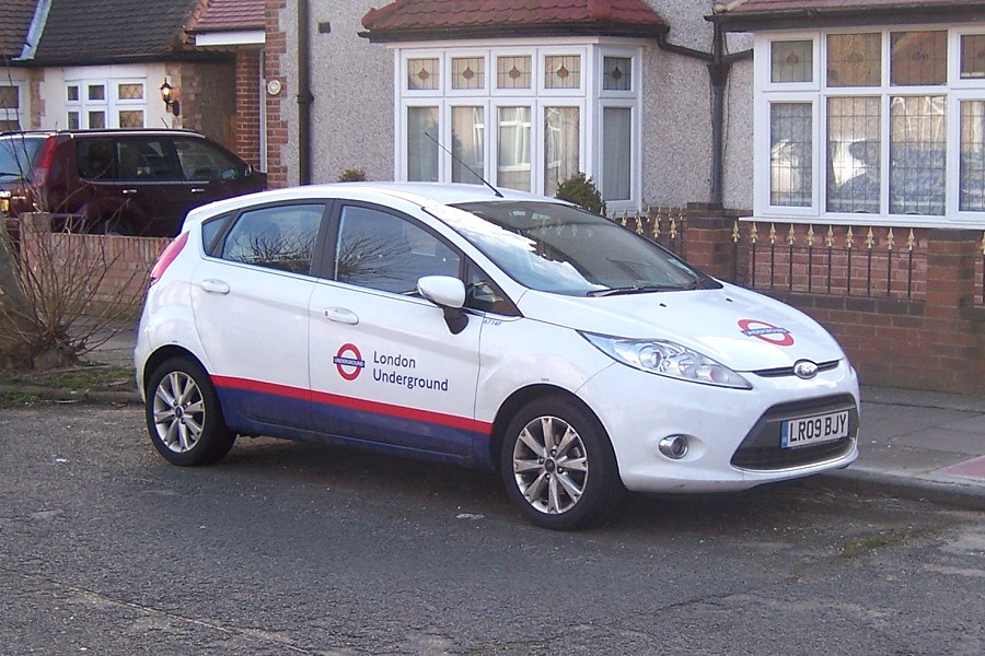 Details: Same vehicle, same location, different livery (part 2)! Since we last showed it, unique Ford Fiesta car 6714F has gained a full set of London Underground markings and red stripes atop the blue skirts. Seen on Woodbine Road in Sidcup on 14th March 2010, it is one of many vehicles that we have marked as being allocated to Griffith House but that in reality only turn up there at the beginning and end of overnight work. |