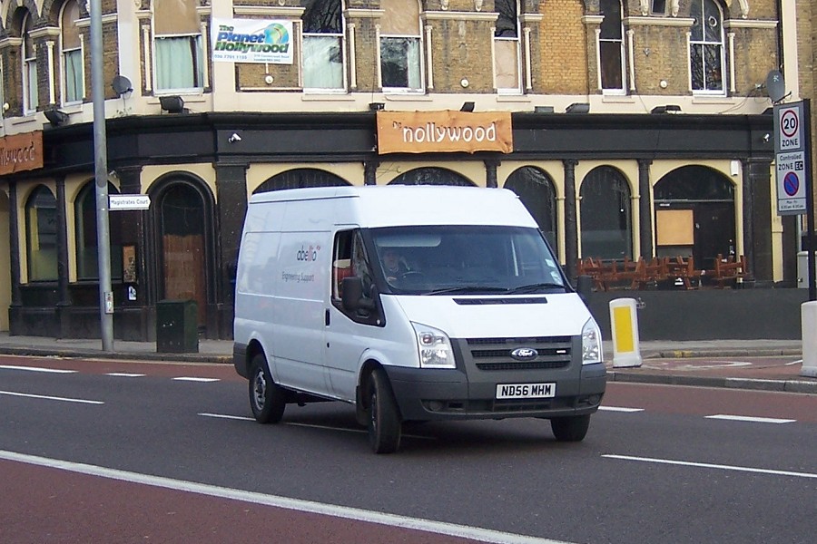 Details: The fleetname Abellio started appearing on former Travel London buses at the end of October 2009. As seems to be usual with these things, there was no rush to extend the rebranding to the service vehicle fleet, and the Travel London name (plus anonymous vehicles) continued to be seen into 2010. In fact, the first report of the new logo on an SV was this Ford Transit van, caught about to enter Walworth Garage on 26th January 2010. The branding is notable for including the logo of NS Dutch railways (the new owners). |