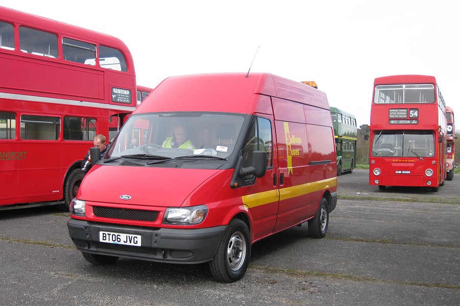 Details: Sullivan Buses no longer operates any TfL bus routes but retains a strong presence on railway replacement operations. They acquired a second Ford Transit van in early 2010 (joining mid-height Y437TDO), this being high-roof BT06JVG. It was photographed at Wisley Airfield during the Cobham event on 11th April 2010. |