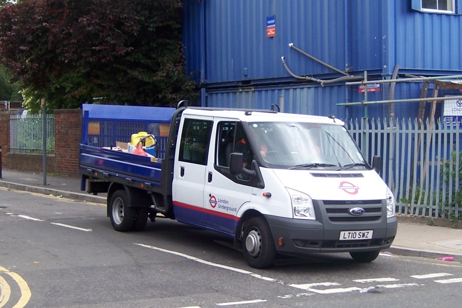Details: Another photo taken outside Hainault Station on 15th June 2010, this time showing recently delivered Ford Transit dropside 6896F. |
