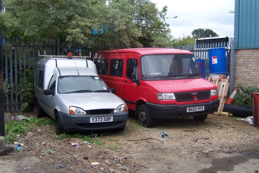 Details: The garage at Byfleet has been operated under the names of Tellings Golden-Miller, Travel London and Abellio in recent years. There is a small engineering base nearby and on 21st August 2010 two service vehicles were found there, seemingly dumped. On the left is Ford Courier Kombi Y373SBP. This had a local fleetnumber of SV4 but seems to have been missed out of the fleetwide numbering exercise undertaken in late 2007. On the right is LDV Convoy minibus BK03YPZ, allocated 8979 but known locally as RV6. |
