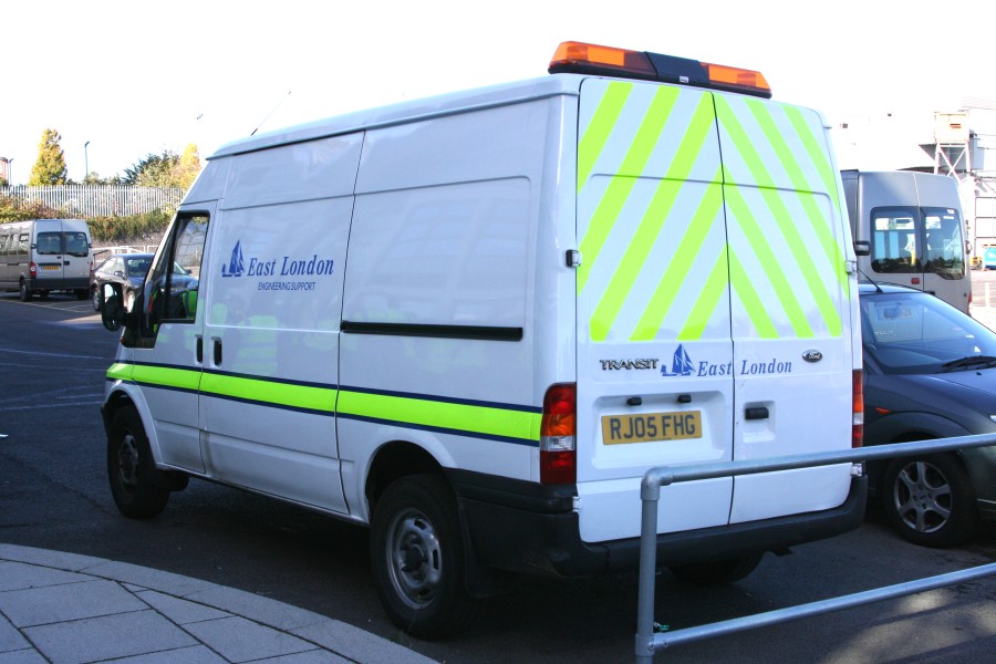 Details: This van has been shown before, but I have included this view to show the revised lettering and rear chevrons. Now that Stagecoach has re-acquired the East London and Selkent operations, it may be that a further new fleetname appears in due course. The location is the parking area outside the new West Ham Garage, with two of the three Renault Master crew ferry minibuses also visible in the background. 24th October 2010. |