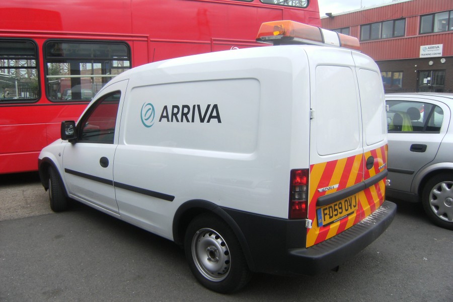 Details: This van is slightly puzzling. Arriva London used to put large fleetnumbers on its crew ferry vehicles, but not on its engineering vans. The preceding two photographs showed Vauxhall Combo vans that appear to be ferries, but that did not display numbers. Conversely, this example is evidently an engineering van (note the light-bar and the rear chevrons), yet when I saw it it had a large number 95 on the front. As an aside, fleetnumber 95 is of course already carried on a Vauxhall Corsa car at Barking. One final point is that engineering vans used to wear an orange Arriva roundel rather than a blue one. Photographed at Lea Valley garage on 10th September 2010. |